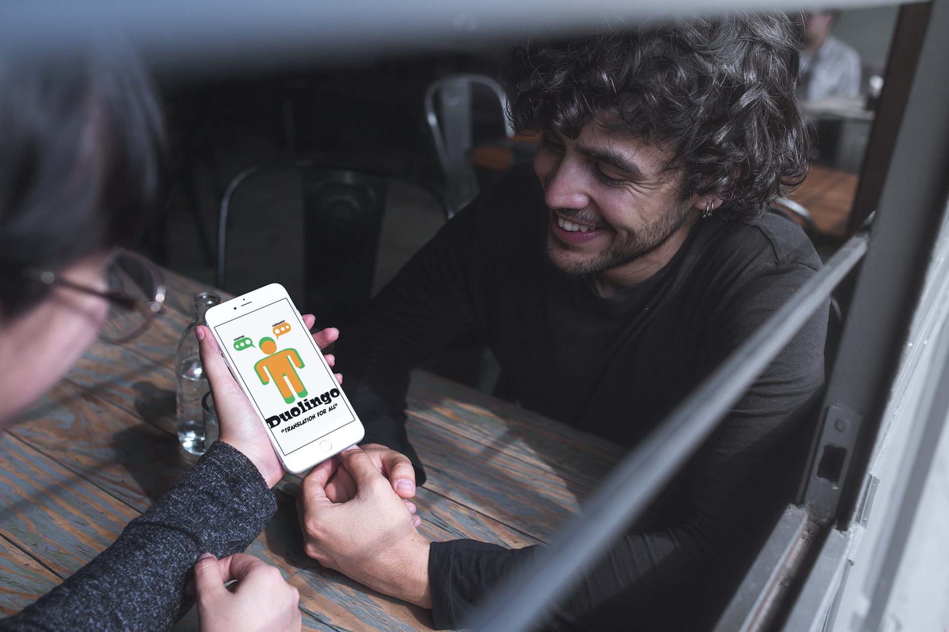 This assignment I decided to redesign a translation app. I decided to go with two people inside of one person with text bubbles above them.